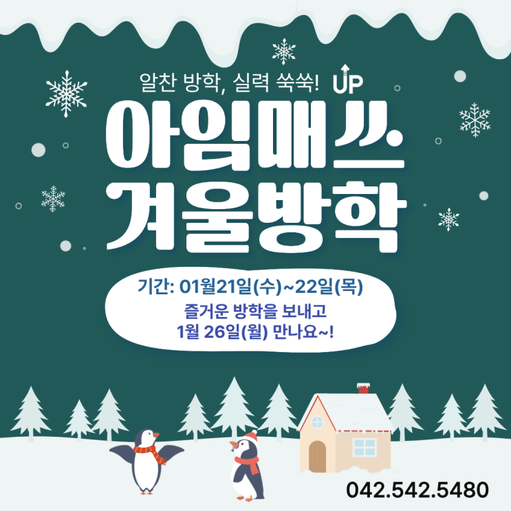 안녕하세요. 아임매쓰 수학입니다. "쉼이 있어 더 단단해지는 공부, 아임매쓰 겨울방학 안내드립니다." 겨울방학은 단순히 공부를 쉬는 시간이 아니라, 성장을 준비하는 중요한 전환점입니다. 아임매쓰 수학은 학생들이 한 템포 숨을 고르고, 그동안의 학습을 정리하며 에너지를 재 충전할수 있도록 1월 21일(수) ~ 1월 22일(목)까지 겨울방학 휴원합니다. 짧은 기간이지만, 충분한 휴식, 생활리듬 회복, 스스로의 학습을 돌아보는 시간이 이후 학습 효율을 높이는 중요한 요소가 됩니다. 쉼이 끝난 후에는 더욱 촘촘한 학습 관리 학생 수준에 맞춘 집중 수업 겨울방학 학습 흐름을 이어가는 체계적인 커리큘럼으로 학생 한명 한명의 성....... <img src="https://blogthumb.pstatic.net/MjAyNTEyMTlfMjQg/MDAxNzY2MTI1NjI4MjM0.6iz9cwOooNVssLa-TaRVHMoiRQ_1OGtmUM4A5KBYah4g.i8B2UUg5XJpe5l3BPvJuKbCUDrPm_46E0ktsLWkznbMg.PNG/%B9%E6%C7%D0%BE%C8%B3%BB.png?type=s3" />