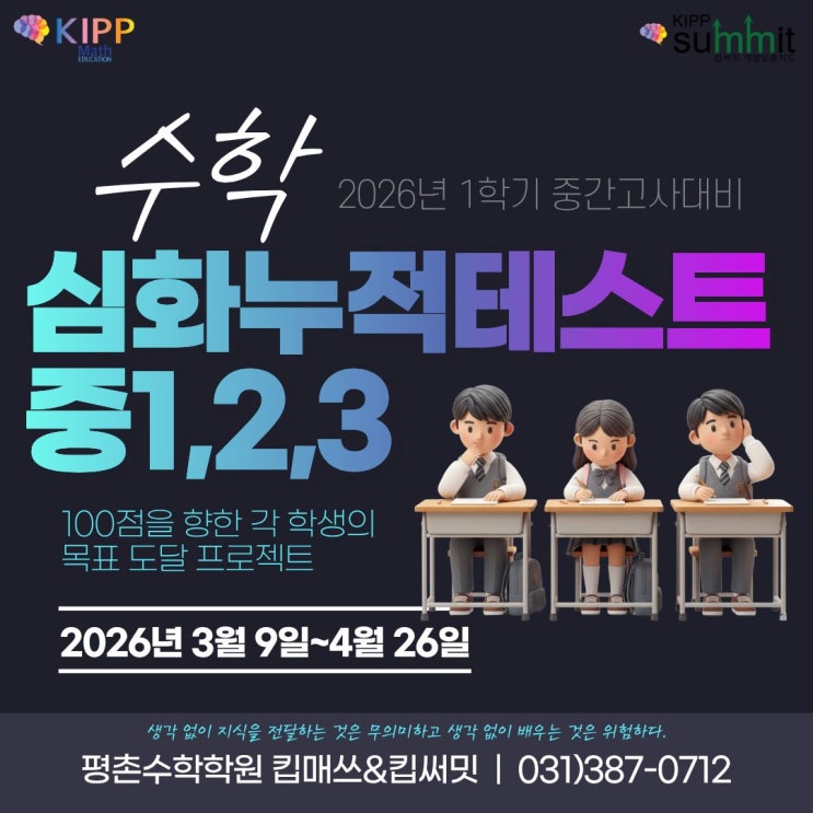 [평촌 킵매쓰 수학학원] 심화누적테스트(중등1,2,3학년)_2026년 1학기 중간고사 대비