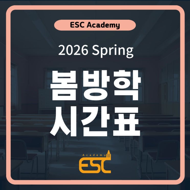 Day to Day 실라버스 및 체계적인 수업안내가 미리 준비된 " 압구정 ESC " 2026 ESC ACADEMY 봄특강+주말반 시간표 파일 다운로드하기 자세한 상담은 학원으로 문의주세요 ▼2026 1~3월 Program▼ ▼강사진 소개▼ ▼카카오톡으로 상담 받기!▼ #ACT, #SAT, #AP, #GPA, #IB, #Math, #Chem, #Bio, #English, #SAT학원, #ACT학원, #압구정학원, #압구정영어학원, #가을학기, #미국대학, #국제학교, #외국인학교, #SIS, #KIS, #YISS, #보딩스쿨, #미국유학, #유학생, #Grammar, #내신대비, #Thanks, #땡스, #Thanksgiving, #겨울방학, #봄방학, #봄학기 <img src="https://blogthumb.pstatic.net/MjAyNjAxMjBfMTAw/MDAxNzY4ODg5MTcxMjA5.SNOhM7-LbErf2F3V7ExjA7lB5zLNZUaUsdHnRHWg8v4g.BZvxl9bfuIc8AUm9jKfco3qiUcVpxSGrf_0Z3Uf4PmMg.JPEG/%C1%A6%B8%F1%C0%BB_%C0%D4%B7%C2%C7%D8%C1%D6%BC%BC%BF%E4._%2880%29.jpg?type=s3" />
