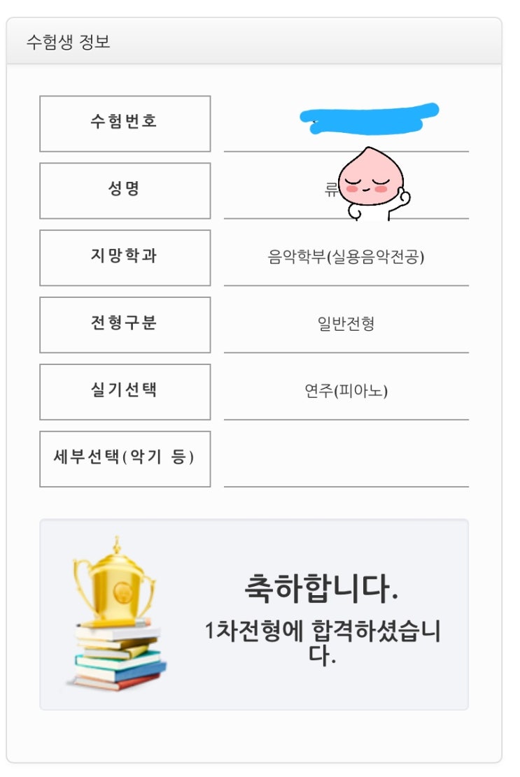 149명 중 4명 뽑는 37 대 1 경쟁률에서 1차 합격 (3배수 합격) 12명 안에 든 것도 대단~! 최종까지 홧팅~! 대구에서 찾아와 열심히??? 공부 중인 류*진 학생 미루기 대마왕 게으른 왕자님 벼락치기 끝판왕 대문자 I INFP 도 할 수 있다는 걸 보여준 류짱.. 서울예술대 1차 합격 축하해요~ ※작곡전공 132명 중 3명 뽑는 44 대 1 경쟁률에서 1차 합격 (3배수 합격) ※재즈피아노전공 149명 중 4명 뽑는 37 대 1 경쟁률에서 1차 합격 (3배수 합격) ※전문대이상 졸업자전형 전체 지원자 556명 중 39명 뽑는 14대 1 경쟁률에서 1차 합격 ※농어촌 특별전형 전체 지원자 85명 중 3명 뽑는 28대 1 경쟁률에서 1차 합격 ※장애인 특별전형 전체 지원자....... <img src="https://blogthumb.pstatic.net/MjAyNjAxMjdfMTEz/MDAxNzY5NTIyMjQ3NTg0.yNXPmzQotTH89chjOgFMyWU2N_a3ghRaLukzYRThxaUg.jWHGjiFLSfq-ZhifpJUKjUFn4E7c0POW-_5gG0UXojYg.JPEG/1769510347627.jpg?type=s3" />