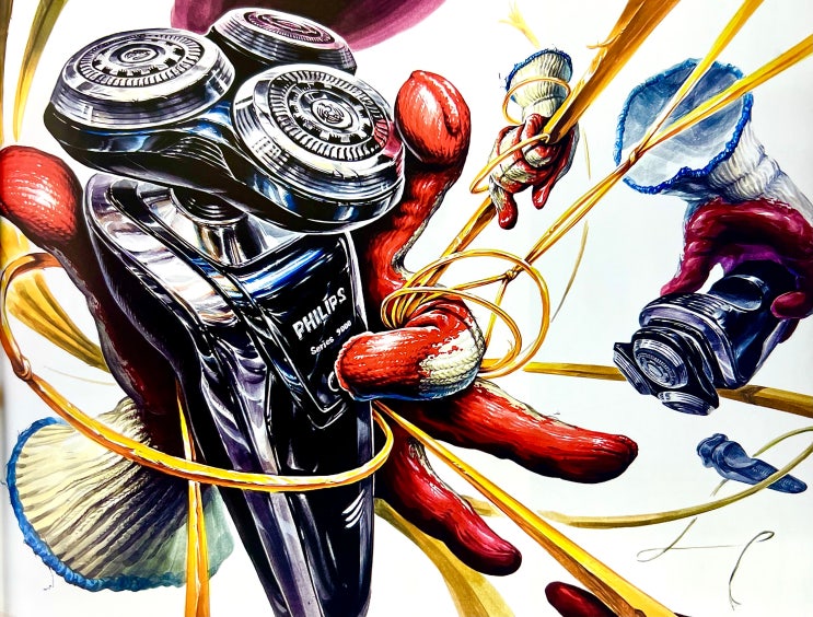 기초디자인 과정작 연구 연구작 정보 * 기초디자인 연구작 * 문제 : 목장갑, 전기면도기 / 제시된 사물을 활용해 화면에 구성하고 표현하시오. * 화지 및 시간 : 3절, 4시간 작품의도 * 사물 자체의 난도가 높고, 표현했으 때의 완성도와 재미가 뛰어난 소재들이다. 따라서 구성은 아주 심플하게 가져가되, 채색은 단단하고 효과적으로 진행했다. * 메인 개체인 목장갑과 면도기를 거리감에 따라 시원하게 배치하고, 고무줄을 활용해 공간의 집중력과 리듬감을 연출했다. 평촌 디자인 가우디 미술학원 (강사 - 김한솔) 채색도구 : 수채화, 디자인컬러, 색연필, 포스터컬러 1단계 '스케치' : 소요시간 1시간 *실기시간 4시간 기준 Ke....... <img src="https://blogthumb.pstatic.net/MjAyNjAzMDlfMjY0/MDAxNzczMDU2Mzk3NjE2.hTYZVl3N7gzVi4_0H5fVKZZvPhA4eJuWCm-c5X47Nj0g.D9HXwtrQFOC6YIZeuQIp9n3nQj-lpz6_6rbE8boVhd8g.JPEG/4.jpg?type=s3" />