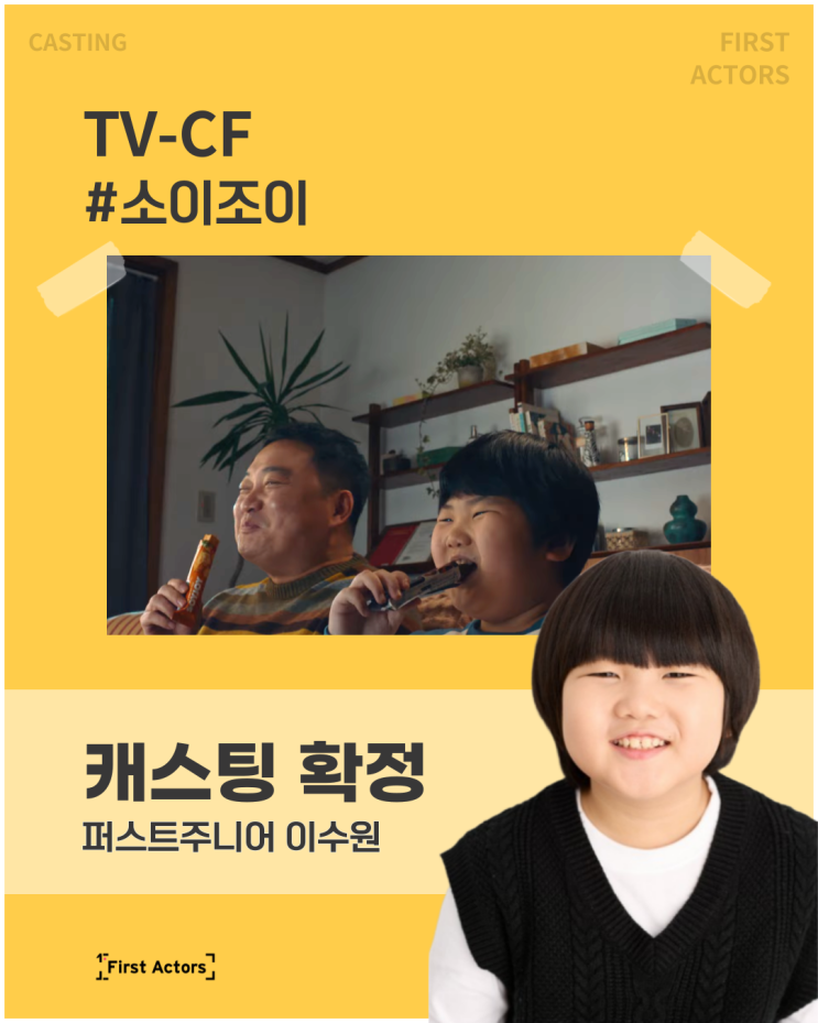 안녕하세요! 꿈꾸는 아이들의 든든한 파트너, 아역캐스팅 전문 에이전시 퍼스트액터스입니다. 새 학기가 시작되는 설레는 3월, 우리 아역배우 친구들은 학교 적응만큼이나 바쁜 현장 활동으로 빛나는 시간을 보냈습니다. 1-2주간 쏟아진 드라마, 영화, 광고 캐스팅 확정 소식을 생생하게 전해드립니다! ■ 3월 1~2주 주요 활동 리포트 TV-CF < 소이조이 > 퍼스트주니어 모델 " 이수원 " 캐스팅 확정 TV-CF < 빙그레 바나나우유 > 퍼스트주니어 모델 " 김승현 " 캐스팅 확정 2026년 3월 1-2주차 캐스팅 확정 광고 아역광고모델 아역캐스팅 TV-CF <제약 광고 > 퍼스트....... <img src="https://blogthumb.pstatic.net/MjAyNjAzMTZfNzAg/MDAxNzczNjQ5MjkzMjA4.W0ifPlHMpzXif-6SlvmBDCigTXVdfz06pGVAsAkivKMg.ig9vAThZoYr90K9idI_ZUOqVBXOCpKoEkRW1ja_qlBsg.PNG/%BC%D2%C0%CC%C1%B6%C0%CC-%C0%CC%BC%F6%BF%F8-001.png?type=s3" />
