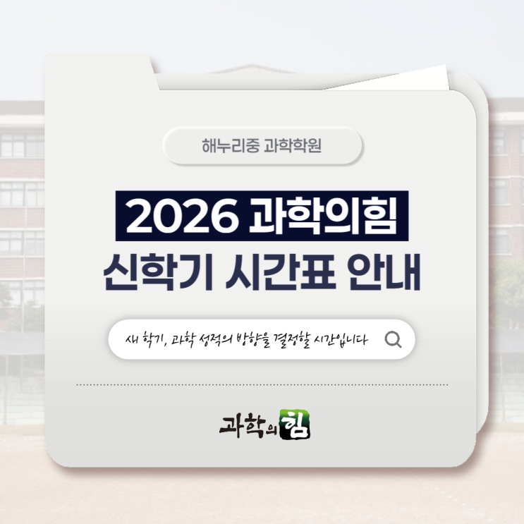 [해누리중 과학학원] 2026 과학의힘 신학기 시간표 안내 ⏰
