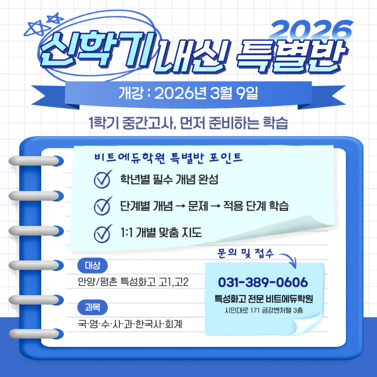평촌고등국어학원ㅣ첫 시험이 성적을 만듭니다! 2026 1학기 중간고사 내신대비 3월 17일 개강