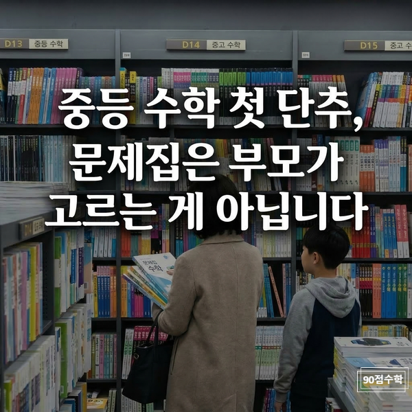주말 오후, 오목교역 서점 중등 수학 매대에 잠시 서 있어 봅니다. 어머님과 아이가 실랑이를 벌이는 풍경은 20년 전이나 지금이나 똑같습니다. "월촌중 가서 안 뒤처지려면 이 정도는 풀어야지. 옆 동 우진이도 벌써 이거 본다더라." 엄마는 매대 가장 눈에 띄는 곳에 쌓인 두꺼운 베스트셀러를 기어이 집어 들고, 아이는 입이 댓 발 나온 채 애꿎은 스마트폰만 만지작거립니다. 결국 엄마의 고집대로 결제된 그 문제집, 이번 학기가 끝날 때쯤 과연 몇 쪽이나 풀려 있을까요? 냉정하게 말씀드리면, 앞 단원만 새까맣게 칠해진 채 아파트 분리수거장 폐지함으로 직행할 확률이 9할입니다. 목동 중등 수학 현장에서 20년 넘게 수많은 아....... <img src="https://blogthumb.pstatic.net/MjAyNjAzMThfMjUy/MDAxNzczODA2NjcxNzM0.vHurwv9WgjvIBIRluDohGV9iA-awsQdKCugc2eX9rqIg.TfdYhCy3Ph6tKRKsnkYDsRn4SDjCpmjlyoPzkQRZZwIg.PNG/Gemini_Generated_Image_8cvtp28cvtp28cvt.png?type=s3" />