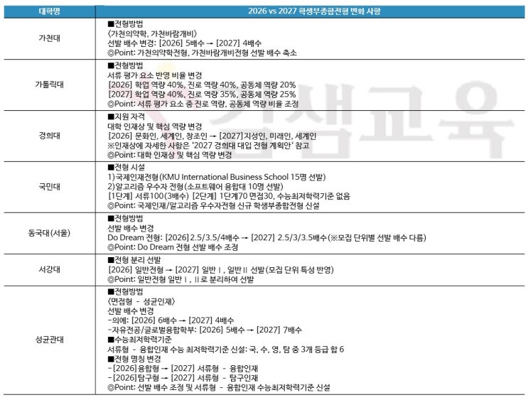 2027 대입 학종 변화 체크! 대학별 주요 변경 사항
