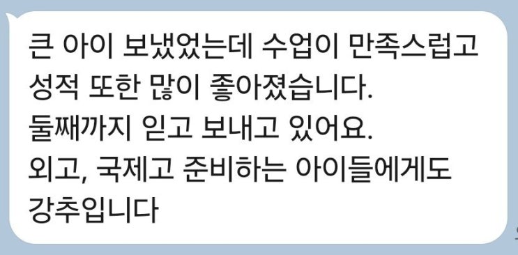 먼저 일본유학을 결심한 고등학교 1학년부터 다니며 제가 원하던 대학에 합격할 때 까지 저를 열정적으로 가르쳐주시고 응원해주신 선생님께 정말 감사합니다. eju와 jlpt를 중점적으로 공부하며, 일본어 지문을 읽고 모르는 한자가 있으면 몇 번이고 쓰면서 연도별 기출문제전부와 다양한 모의고사를 매일매일 치르면서, 학원에서 일본어를 정말 열심히 공부할 수 있었습니다. 수업에 항상 진심이시고 열정적인 선생님께서는 모르는 것이 있으면 친절히 가르쳐주셨을뿐만 아니라, 제 자신이 몰랐던 부족한 부분들을 지적해주시고 피드백을 주셨습니다. 그래서인지 학원에서 공부하는 매일마다 제 자신이 성장하는 것을 느끼고 성취감을 얻으며 공.......