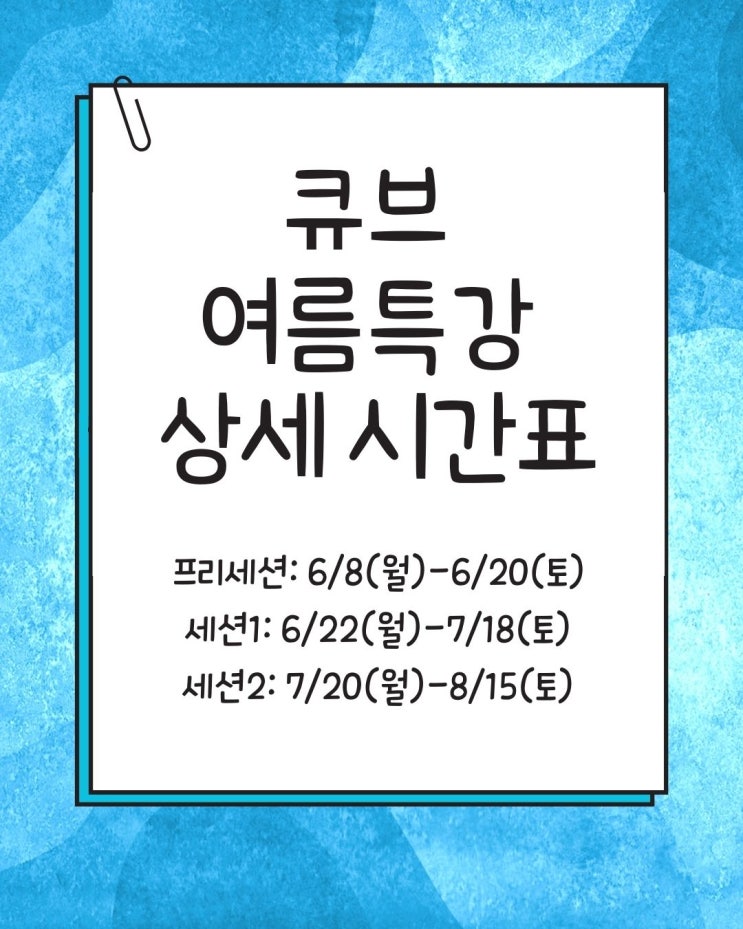 2026 여름 특강 상세시간표