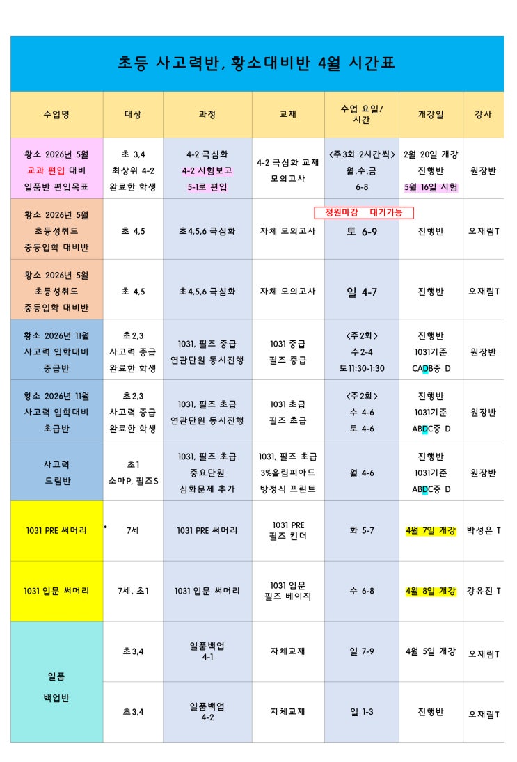 황소 대비반 4월 시간표