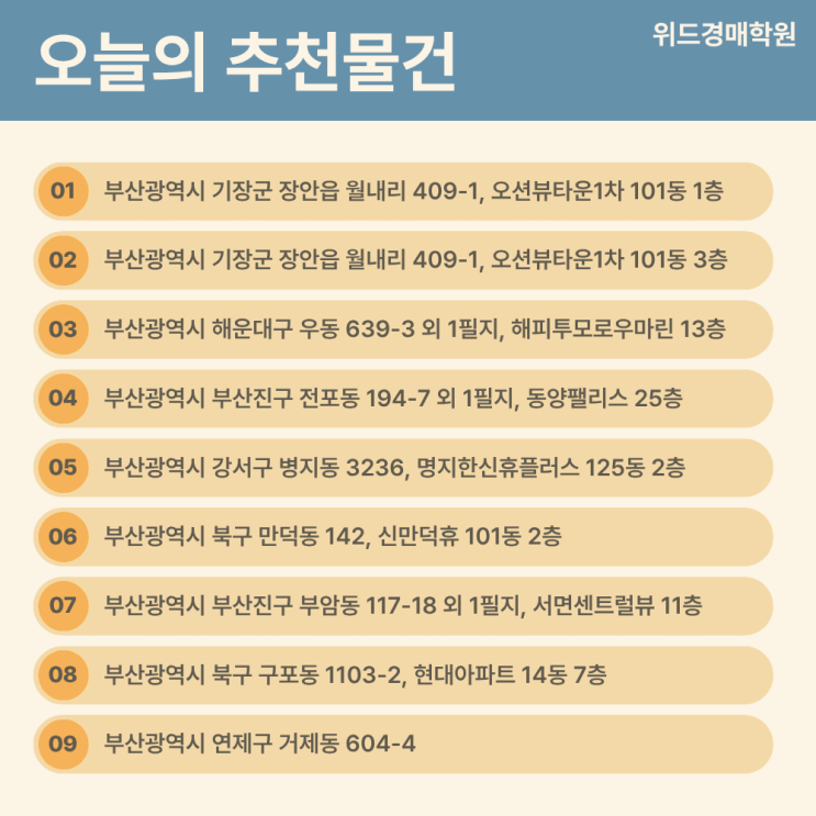 안녕하세요 여러분! 부산경매학원 위드경매전문학원입니다! 오늘은 김태경원장님의 전문가반 수업 "추천경매물건&권리분석" 시간이었습니다! 원장님께서 이 물건을 추천하시는 이유!를 중점적으로 보시면 두배, 세배로 더 가져가실 수 있다는 사실! 요즘 뉴스보시면 다들 마음이 심난하시죠?ㅠㅠ 최근 정부가 다주택자 규제를 재차 강화하고 있습니다. 이어서 정부가 실제로 세금·대출·임대 규제를 동시에 강화하고 있다는 보도가 이어지고 있어요... 이럴때 내가 "정책 리스크"를 모르면 경매 시장에서 살아남을 수 없습니다! 경매 뿐 아니라 모든 것에서 좋을 때라는게 따로 오는 것이 아닙니다ㅎㅎ 우리가 어떤 상황....... <img src="https://blogthumb.pstatic.net/MjAyNjAyMjNfMTkw/MDAxNzcxODQyOTU5MTY2.5WorN5hNi9_KvRzvwIrAvCe9kffvpvPvs3jnWjUhyxcg.9BHBnChk4AMhSEpzfP_Gw0tct1ziyfzYACxUKMFYdgog.PNG/%BF%C0%B4%C3%C0%C7_%C3%DF%C3%B5%B9%B0%B0%C7.png?type=s3" />