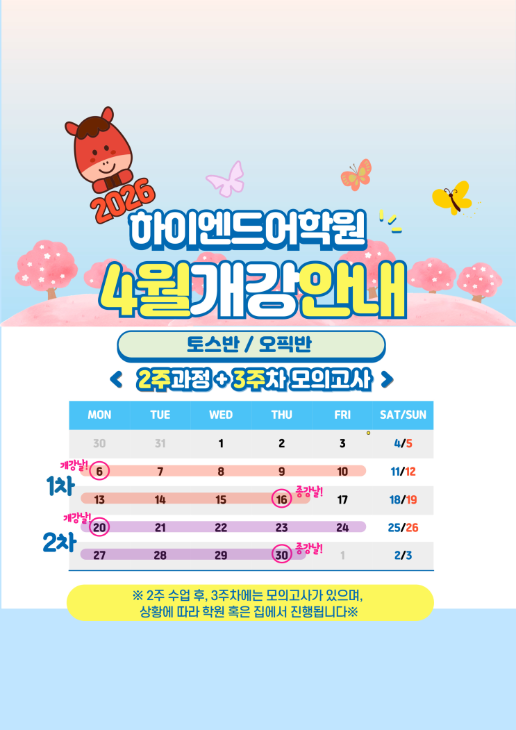 26년 4월 개강안내