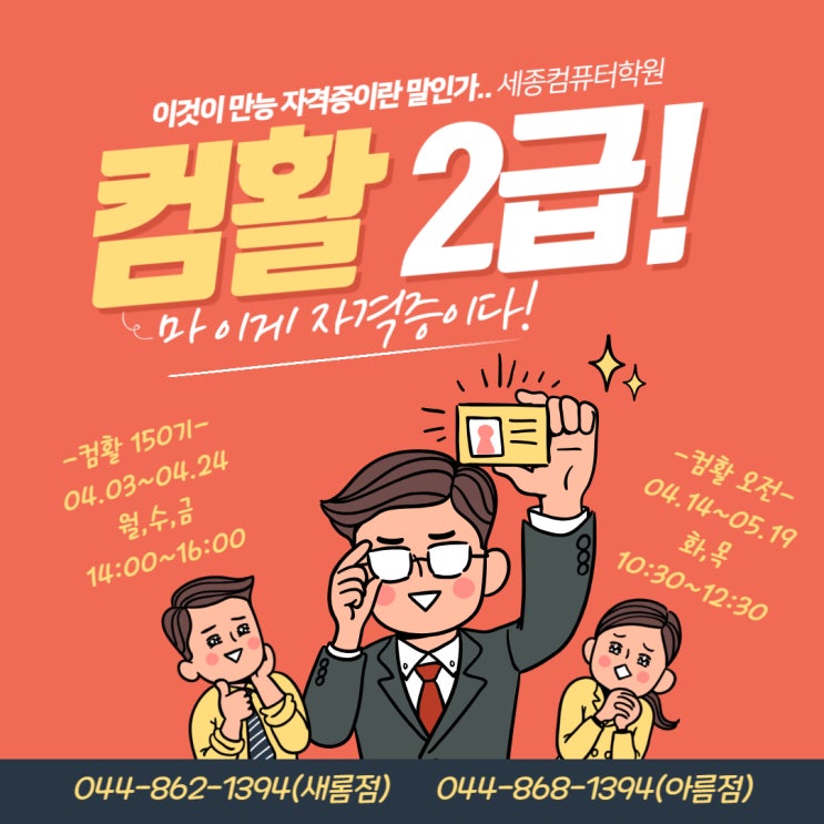 안녕하세요~ IT 역량을 책임지는 세종컴퓨터학원입니다. 취업 준비를 시작하거나 이직을 고민할 때, 가장 먼저 떠올리는 자격증이 무엇일까요? 아마 10명 중 9명은 컴활 자격증을 꼽으실 겁니다. 엑셀은 오피스 프로그램 중 가장 다루기 어려운 프로그램이라 섣불리 "그냥 남들 다 따니까"라는 생각으로 접근하면 짧은 시험 시간과 부족한 연습량 땜에 포기할 수 있습니다! 컴활 시험은 합격률이 아주 높은 편은 아니기 때문에 내가 취득했을 때의 성취감은 더욱 큽니다~ 혼자 독학하다가 "엑셀 지옥"에 빠져 포기하신 분들 많이 봤습니다. 본원의 전문 강사진은 시험에 자주 출제되는 기출 유형 분석 및 차별화된 커리큘럼....... <img src="https://blogthumb.pstatic.net/MjAyNjAzMjBfMjAw/MDAxNzczOTc2NDIwNTQ2.TUyt09Ih4kkaeHiOQcRN5ej_0MKFzWfKMLN8uWzIivIg.NFpHkvdfTublqJOPe8cOLpghkQuBH7OWRgrSoSzVnGAg.JPEG/%C1%A6%B8%F1%C0%BB_%C0%D4%B7%C2%C7%D8%C1%D6%BC%BC%BF%E4_-001_%2838%29.jpg?type=s3" />