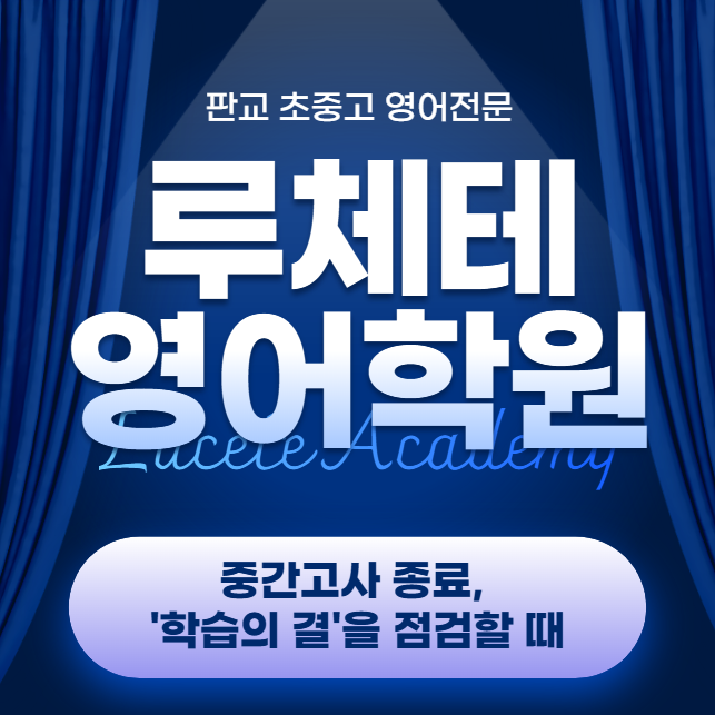 안녕하세요! 루체테영어학원 입니다^^ 1학기 중간고사가 본격적으로 시작하고, 일부는 이미 종료된 학교도 있는 이 시기! 학부모님들의 마음은 복잡하실 수 있습니다. 시험결과에 대한 아쉬움 보다는 '그 다음'을 어떻게 준비하느냐가 아이의 진짜 실력을 결정짓는 차이가 됩니다. 중간고사 종료, '학습의 결'을 점검할 때 중간고사가 끝나면 아이들도, 부모님도 긴장이 풀리기 마련입니다. 하지만 상위권으로 도약하는 아이들은 바로 이 시기에 학습의 관점을 완전히 바꿉니다. 단순히 문제만 많이 풀어서 맞히는 '양치기'공부는 중등 내신까지는 어쩌면 통할지 모릅니다. 하지만 수능과 고등 내신으로 올라갈수....... <img src="https://blogthumb.pstatic.net/MjAyNjA0MjVfMjQy/MDAxNzc3MTE5ODA2NTM5.L05HzOecXtPFl4B5uZYJBqymOlNnyC2Jn3Iug5F2rUgg.L5laE8Wvot1q2Z9_LWRL1utOtI5usFNTe5c1OdZ81q0g.PNG/image.png?type=s3" />