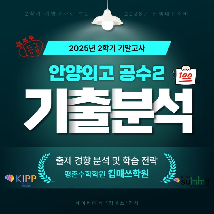 예비고2를 위한 설명회(안양외고) 안양외고반 수업시간 안내(2025년 12월 13일(토) 시작) 기말이 마무리 되었던 지난 토요일부터 대수 수업을 시작했습니다. 물론 공연동아리 행사로 많은 학생들이 결석을 해서 영상을 찍고 공유하는 상황이긴 하지만 빠르게 시작해야 하는 시점이라 우선 시작했으니 참여치 못한 학생들은 "대수 지식의 힘(윈터)"교재를 받아서 공부를 시작하고 다음 수업을 준비해주세요. *12월은 대수를 시작합니다. 1월과 2월은 대수 특강 또는 미적분1특강을 선택할 수 있도록 계획하고 있습니다. 2025년 2학기 기말 기출분석 안양외고1 공수2 명제~무리함수 교과서 및 단원별 문항분석 모든 문항이 부교재와 교과....... <img src="https://blogthumb.pstatic.net/MjAyNTEyMTZfMiAg/MDAxNzY1ODY1Mzg3NzMy.oswqXHde1YgHnTWe61UOJiwZQc9MvFUlIt0oVXus2Vkg.ONxiAz-AG3h91ToETl7HjIMByqT_Arhv781hypo81XMg.JPEG/%BE%C8%BE%E7%BF%DC%B0%ED_%B0%F8%BC%F62.jpg?type=s3" />