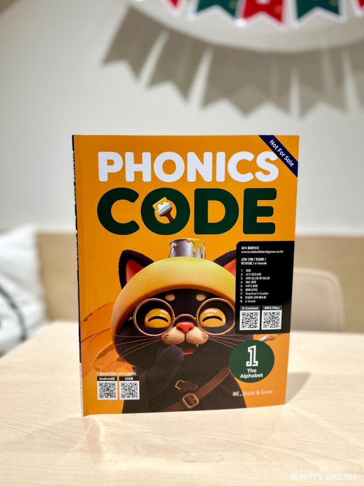 안녕하세요 버니스영어의 써니쌤입니다. 저는 원서와 교재 연구에 진심인 편인데요. 최근 파닉스를 배우고 있는 유치부와 리딩을 시작한 유치, 초등부 아이들에게 사용할 교재들을 다시 살펴보고 있던 중이었어요. 마침 능률에서 새로운 교재가 나왔다고 하여 #교재체험단 으로 신청해 #협찬 받은 'Phonics Code' 교재를 꼼꼼히 살펴보게 되었습니다. Phonics Code 아이들에게 교재의 첫인상은 바로 북 커버! 생각보다 중요합니다. Phonics Code 1은 귀여운 고양이 캐릭터가 눈길을 끄는 표지로 아이들이 거부감 없이 교재를 펼칠 수 있겠다는 첫인상을 주었어요. 어느 파닉스 교재든 1권에서는 알파벳 인지, 즉 알파벳 문자(lette....... <img src="https://blogthumb.pstatic.net/MjAyNTEyMjNfMjk4/MDAxNzY2NDIxNzA2ODE1.CSgw0yiSPPo8G5iB7TpPabk8rWO6JLJTIjlcEDIYDeIg.1H4KGclI-0-nRwlsV34xg0B95yqv1IybbUK8lba6yNkg.JPEG/IMG%A3%DF8205.JPG?type=s3" />
