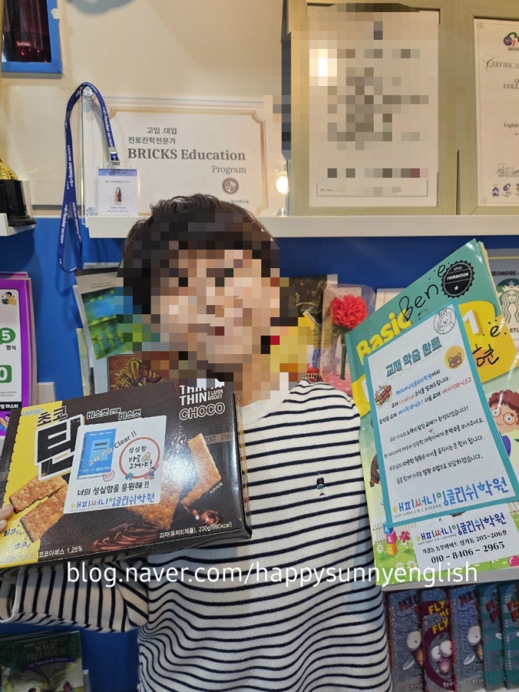 안녕하세요 영어 아웃풋 교육 전문가 해피써니잉글리쉬학원입니다. 오늘은 기특하고 기특한 우리 해피써니잉글리쉬학원의 막내반 친구들을 칭찬해주세요 2026년 1월에 처음 영어를 시작한 초1, 초2 친구들이 이제 초2, 초3이 되었구요~ <베이직파닉스 1> <베이직파닉스2> 교재 1권을 마쳤답니다. 열심히 영어공부한 친구들에게 맛있는 간식을 선물로 주었어요. 축하인증샷도 찍었답니다. 우리 친구들이 좋아하는 간식!! 해피써니잉글리쉬학원에서는 언어뇌가 닫히기전인 만 9세까지는 영어소리와 친숙하게 하고 영어알파벳과 음가랑 친해지며 영어가 즐거운 경험이라는 소중한 수업을 진행합니다. 영어....... <img src="https://blogthumb.pstatic.net/MjAyNjAzMTNfMjkg/MDAxNzczMzU1NTg4MTY3.5U3algERe2M7HmqjO0F8VMyFdC6TzxoFZmqo5GTVRrsg.XPIHXEAKDif8HCYmH6BtphdphoXML-nWHWhov4b2dL0g.JPEG/900%A3%DF1773355587328.jpg?type=s3" />