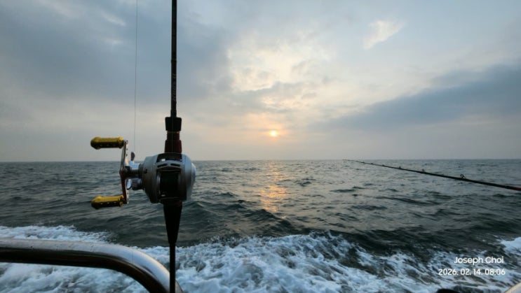 설 명절 연휴 첫 날! 졸린 눈 비비고 새벽 2시 대천항으로 출발! 대천항에서 아이언호...를 타고 5시 출항! 우럭잡으러 GoGo! 배에서 바라보는 해돋이는 언제나 아름답다! 대천항에서 먼 바다로 2시간 30분여를 나가서 첫 포인트에도착! 사진에 담지 못했지만 추운 겨울 새벽에 선사에서 제공해준 뜨끈한 만두국이 언 몸을 녹여줍니다. 아이언호 사무장님 만두국 짱! 준비해갔던 편대채비는 사용금지라고해서 사무장님한테 2단채비 두 개 얻어서 낚시 시작! 채비가 부족해서 밑걸림 얼마나 조마조마했는지..ㅋㅋ 난생처음 잡아올린 삼식이...정말 못생김! 작은 한식 뷔폐로 차려진 점심식사! 선상에서 먹는 밥 맛은 말 해 뭐해! 최종조과! 삼식이....... <img src="https://blogthumb.pstatic.net/MjAyNjAyMTVfNjIg/MDAxNzcxMTA1NDI0Nzc1.kG4jJtAMFz5lLKjgEQvx0LSXqFmkXCoRO0CtDbwW0w8g.unBW325z0px08J05pxCJF_ohqacEdfkJDR73AMKMLQsg.JPEG/900%A3%DF20260214%A3%DF080629.jpg?type=s3" />