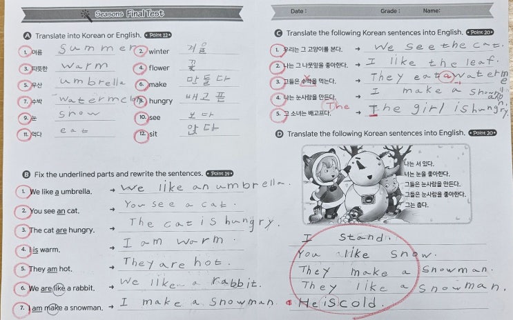 영어문장 구조를 이해한 7세들의 라이팅: 파이널 테스트!!<남악영어학원,영산초영어학원 솔트어학원>