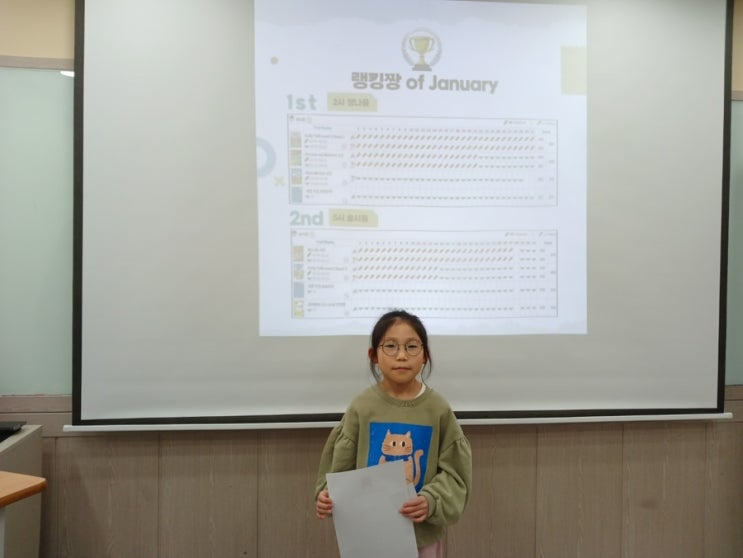 우리 용황지앤비 친구들과 3월의 동영상 시상식을 진행했습니다 상 받은 우리 친구들에게 많은 격려와 칭찬 부탁드립니다!❤️ 1/2월 랭킹짱 랭킹짱 1등 : 정나윤 (1,440)/ 송시원 (1,370) 랭킹짱 2등 : 송시원 (1,310)/ 이채령 (1,350) 랭킹짱 3등 : 이고은 (1,305)/ 이수아 (1,205) 랭킹짱 4등 : 유나경 (1,305)/정나윤 (1,200) 랭킹짱 5등 : 이수아 (1,280)/정지환 (1,085) 동영상 최우수자 : Columbia: 김채린2, 정재윤2, 정하연, 조민준2, 최강훈2, 최진훈, 김강현, 송시원2, 이수아2, 정지환2 Cambridge: 이서진2, 유나윤2, 최윤아2, 박하린2, 이가은2, 이서준2 Stanford: 이채령2, 정나윤....... <img src="https://blogthumb.pstatic.net/MjAyNjAzMjBfMTQy/MDAxNzczOTMzMTc1NTUw.GRhET2N2E-V49HPrxCC5QJbELeFjqjvr1NXKS7Dydckg.gBgNHqSqbgroF5YuCMngrI8VybIV83BS81pfsgmxITog.JPEG/B5E5039F%A3%AD029E%A3%AD44FF%A3%ADB87E%A3%AD5596F01F936B.jpg?type=s3" />