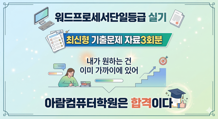 안녕하세요. 컴퓨터자격증다따네! 아람컴 아람돌이입니다. 2025년에 출제되었던 워드실기 기출문제 자료입니다. 주(길벗) 시나공 문제 나와있는 것을 참고하여 올렸습니다. 개인이 공부하기 위한 용도로만 사용하세요. 오늘 1회차 분 올려 드리고 곧 정리되면 2차분까지 최종 올려드릴 생각입니다. 문제 내용이 나오는 이미지는 인터넷이나 개인이 알아서 다운로드해 크기만큼 조절해 사용하는 하는 것으로 대신합니다. 워드실기 자격증 빠른 취득을 원하시거나 기초부터 시작해 꼼꼼한 수업을 원하시면 언제든지 아람 컴퓨터학원과 상담하세요. 워드 실기는 영타, 한타를 잘 치셔 입력 수정이 최소한 27분 정도 마스터하시고 남은 3분여 시간은....... <img src="https://blogthumb.pstatic.net/MjAyNjAzMTZfMTM0/MDAxNzczNjQyNzU4MTQ1.VAdtyBlWwSA-L32wf2IfCUT2GAruSuEDWEmZH5dwNvEg.a63qOs9VccVqobhkP7XYneyx77mltVjm4E58pJa523gg.PNG/%BF%F6%B5%E5%BD%C7%B1%E2%B1%E2%C3%E2%B9%AE%C1%A6.png?type=s3" />