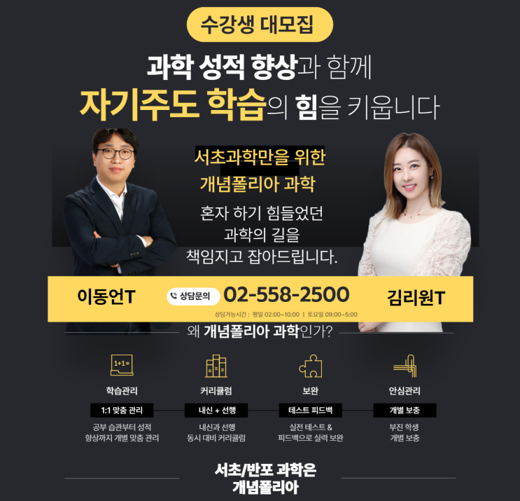 [서초과학전문학원] 개념폴리아 과학 중2, 중3, 고등 대상 중간고사 내신대비 소주정예 집중반 개강 안내