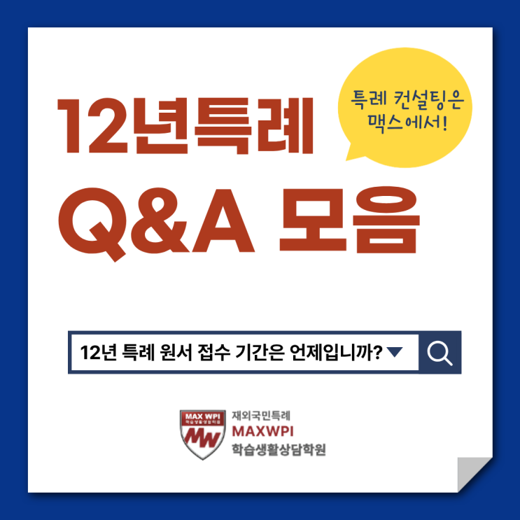 안녕하세요^^ 재외국민특례 맥스WPI의 맥스비입니다. 오늘은 12년 특례 Q&A 모음 마지막 내용을 전해드리겠습니다. ^^ 지원자격과 과정 및 의약학 메디컬 계열에 대한 세부 질문을 정리했습니다. 더 궁금하신 내용은 댓글이나 특례119 카페에 남겨주세요~ 1. 지원횟수 2. 지원자격 3. 전형방법 및 제출서류 4. 대학별 전형 특징- 중앙대, 이화여대, 경희대 5. 기타 문의 <img src="https://blogthumb.pstatic.net/MjAyNjAyMTFfMjg3/MDAxNzcwNzM4MzA1NDQ3.inVRAU79yZ0h49EWWVgo_rtjDs1QjdAzAa_XSkJzYLgg.XBZmdFE9xJ9y32lQdhE26QmYvEpAG9Q3VGzEcspgAwUg.PNG/%C1%A6%B8%F1%C0%BB_%C0%D4%B7%C2%C7%D8%C1%D6%BC%BC%BF%E4._%2861%29.png?type=s3" />
