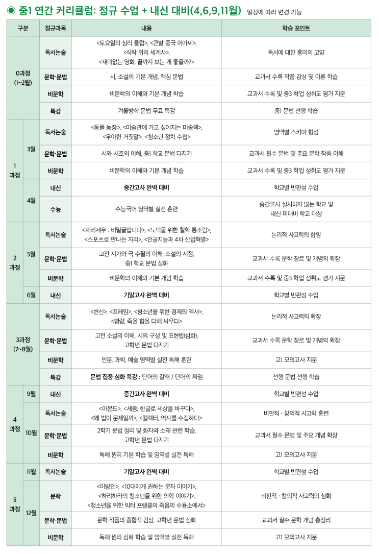 [대치] 2026년 중1 연간 커리큘럼