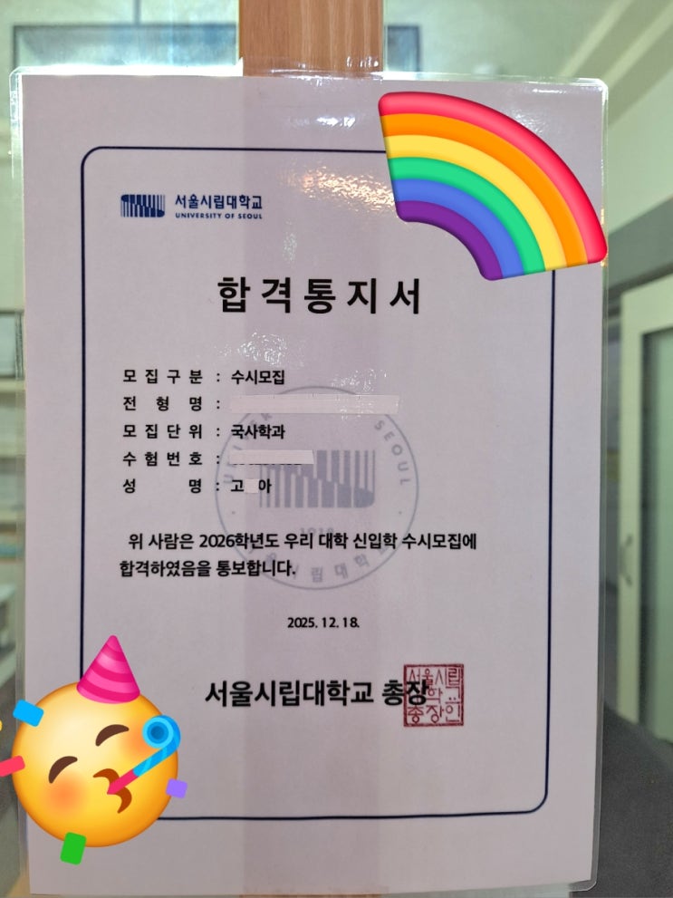 신월고 고** 학생 서울시립대 한국외국어대학교 단국대 동시 합격!!! Congratulations SEP에 등록하기전 (고1 ,3월에 등원 시작 ~ 수능 보기 전달까지 수업 마무리) 학원 및 과외 경험이 많지 않아 걱정을 하였으나 시간이 지나며 계속 성적이 상승곡선을 그리며!!! 포기하지 않고 끝까지 노력한 결과!!! Ta-da 열심히 공부해준 고**학생에게 축하의 메세지를 전합니다. <img src="https://blogthumb.pstatic.net/MjAyNjAyMTlfNzYg/MDAxNzcxNTEyMDUyNjEw.E-T2gk2gg-xiXzhT3Qao4Ra39QzE2KuW0tjpe2ncRucg.nJBUdEFcDbKl-mU5MQv26Nz3hPP5JRoKXlkSIyLS45Qg.JPEG/900%A3%DF20260219%A3%DF204701.jpg?type=s3" />