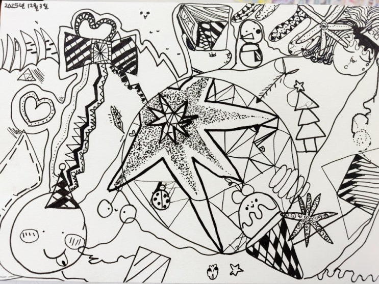 위 보라색 스톤 반지는 何も考えていない時に手を動かすとどうなるのか。 아무 생각없이 손을 움직이면 어떤 모양이 될까 라는 제목으로 토쿄와 오사카에서 전시했던 반지에요. 그땐 오토마티즘이라는 걸 몰랐고 그냥 좋아하서 하는거였는데 알고보니 오토마티즘이었다 정도였습니다. 오토마티즘을 아이들에게 말로 풀어내는게 참 쉽지 않았는데요,가장 쉽게 접근하는 방식으로 풀어주니 아주 잘 따라오더라고요. 다들 저보다도 멋진 작품들을 그린것 같습니다. 아기예수탄생까지의 과정을 그림으로 담고싶었는데요, 돈키에게는 너무 어렵고 고급스럽다는 듣기 좋은 이유로 거절당한 작품과, 그 뒤 쉽게 크리스마스를 풀어냈던 그림작품....... <img src="https://blogthumb.pstatic.net/MjAyNTEyMDZfMTI2/MDAxNzY1MDA4MzYzNDY1.3ew7dP-14DFmUmnOf05p5v-4d23h9R63hD_zs0VN-24g.5t9npFl0TSJ6qkL88iKLUAwJk6u98T1wtFx3tM0XfvMg.JPEG/output%A3%DF3644502609.jpg?type=s3" />