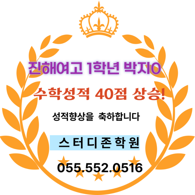 해마다 명문대 입시 성공의 신화 를 창조하는 스터디존학원 에서 또 성적 향상의 기쁨을 전합니다. 우리 스터디존학원의 원생이자 진해여고 1학년인 박지0 학생이 이번 시험에서 수학 성적이 40점 이나 상승 했어요~ 사실, 시험기간이 되면 선생님들도 학생들도 많이 예민해지는데요. 우리 박지0 학생은 얼굴도 너무 예쁜데 성격도 너~무 예뻐서 선생님 잔소리에도 늘 웃는 얼굴이였죠. 지0~ 이번 시험 준비 하는 동안 밝은 얼굴로 열심히 성실한 모습 보여줘서 정말 멋졌어~~ 그리고, 쌤들이 너를 위하는 진심을, 진심으로 믿고 따라줘서 고마웠어~~ 우리 스터디존학원은 학생들 한명 한명을 진심을 다해 가르칩니다. 단체로 진도를 같이 나가는....... <img src="https://blogthumb.pstatic.net/MjAyNTEyMjJfMjQ2/MDAxNzY2MzY0MDQzNjUz.Pr0Jxyybm0ymfaTCxt9fvUdTff8JnkfQLDkaiBCfcPQg.I3DqrkRNXiqyOcdu9RjeN0YyfJX3NCSWJqZwCYxch4Ag.PNG/900%A3%DF%C1%A6%B8%F1%C0%BB%A3%AD%C0%D4%B7%C2%C7%D8%C1%D6%BC%BC%BF%E4%A3%DF%A3%AD001%A3%A819%A3%A9.png?type=s3" />
