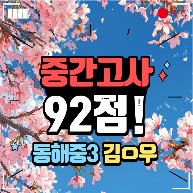 동해중 3학년 김O우 학생이 열심히 한 결과 2026년 1학기 중간고사에서 92점을 받았습니다. 선생님 믿고 열심히 해주고 잘 따라와 줘서 고마워. 2026년 1학기 기말고사에서도 좋은 성적을 기대합니다. 최상위권을 유지할 수 있도록 다비드수학에서는 최선을 다하겠습니다. <img src="https://blogthumb.pstatic.net/MjAyNjA0MjhfMjQ5/MDAxNzc3Mzc5ODgxMTQ1.hltC2uinJsjdhq5AUIQF7e6EPnNQPllqHkmYbAcSQKcg.owBjxbsdsC0wNuvgFG9suQybo8cdmXxOKaPfNFEUb-Ug.PNG/%C1%A6%B8%F1%C0%BB_%C0%D4%B7%C2%C7%D8%C1%D6%BC%BC%BF%E4.-_%BA%B9%BB%E7%BA%BB_%284%29.png?type=s3" />