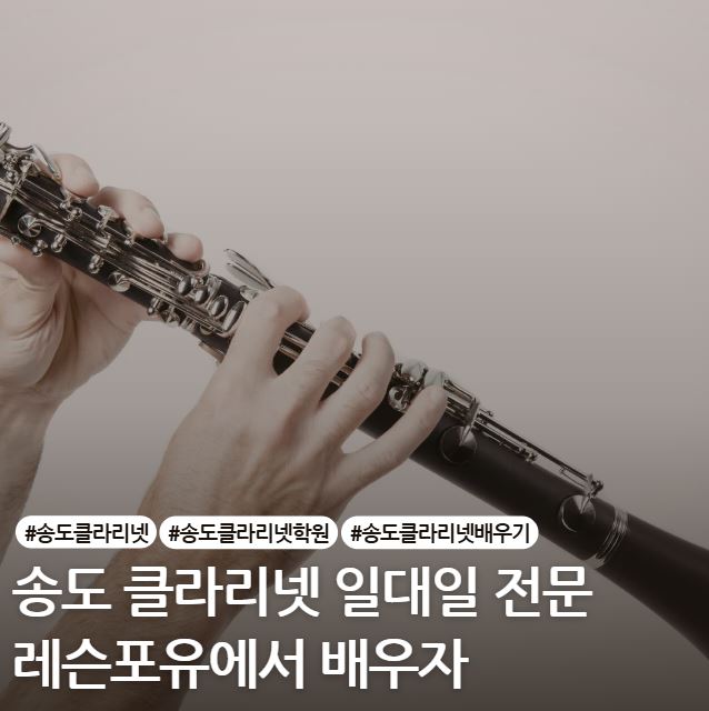 송도 클라리넷 배우기, 왜 지금 시작해야 할까요? 레슨포유가 알려드립니다! 아이부터 성인까지 누구나 도전할 수 있는 악기, 바로 클라리넷입니다. 최근 송도 지역에서도 송도 클라리넷 배우기에 대한 관심이 점점 높아지고 있는데요. 단순한 취미를 넘어 정서 발달과 집중력 향상까지 도움을 주는 악기이기 때문입니다. 오늘은 클라리넷의 매력과 함께 왜 많은 분들이 송도 클라리넷 배우기를 선택하는지 자세히 알려드릴게요. 클라리넷이란 어떤 악기일까요? 클라리네슨 목관악기 중 하나로, 따뜻하고 부드러운 음색이 특징입니다. 낮은 음에서는 깊고 풍부한 소리를, 높은 음에서는 맑고 밝은 소리를 낼 수 있어 표현력이 매우 뛰어난 악기입....... <img src="https://blogthumb.pstatic.net/MjAyNjAzMThfMTc2/MDAxNzczODI1NzA1MDE5.NbFQ8EJdZDaj90i0VMqHfB7RUUSx1DTmAmYu7qZELCEg.AQLz7LZj5la065uWAQNwD-EaSkX7zyzQvl8NKeol-4Yg.JPEG/%C4%B8%C3%B3.JPG?type=s3" />