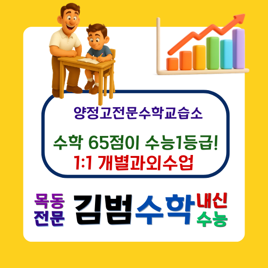 처음 상담 당시 김**학생의 수학 점수는 65점이었습니다. 기본 개념은 알고 있었지만 문제 풀이 과정에서 반복되는 실수와 개념 적용의 불안정함이 점수 상승을 막고 있었습니다. 저는 양정고전문수학교습소에서 학생의 풀이 과정을 하나하나 분석하며 실수의 원인을 체계적으로 점검하는 지도부터 시작했습니다. 수학점수가 65점인 김**학생이 쌤과 수업 후 3월 모의고사에서 2등급이 되었고 수능에서는 목표인 1등급을 받았습니다. 저는 양정고전문수학교습소에서 반복되는 오류를 줄이기 위해 오답 정리와 풀이 과정 점검을 꾸준히 지도했고, 약한 개념은 다시 정리하며 집중적으로 학습하도록 했습니다. 또한 EBS 연계 문제를 다양한 방식으....... <img src="https://blogthumb.pstatic.net/MjAyNjAzMTlfMTUg/MDAxNzczODg2MzA4NDc5.MyhC9e5XjUrUqp8Mk7A9HuIs_UmXuivxbZX29pDZ6Vsg.qtz8XeAFmD3uUcBU5GcAgBNMj0wGO2OTXZGBHKitqhsg.PNG/1.png?type=s3" />