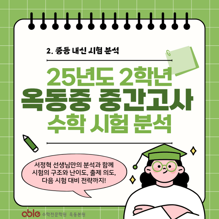 [울산 옥동 수학학원 에이블 중등부] 2. 2025년 옥동중학교 2학년 1학기 중간고사 분석