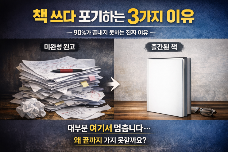 책 쓰기 하다 포기하는 가장 큰 3가지 이유 — 왜 대부분의 사람은 ‘끝’까지 가지 못할까요 “언젠가는 꼭 책을 써야지.” 이 말을 마음속에 품은 분들을 저는 수없이 만나왔습니다. 하지만 실제로 책 한 권을 완성한 사람은 극소수입니다. 문제는 재능도, 성실성도 아닙니다. 책을 쓰다 포기하는 데에는 공통된 이유가 있습니다. 오늘은 제가 20년 가까이 책쓰기 수업과 현장에서 지켜본 **‘책 쓰다 포기하는 3가지 진짜 이유’**를 말씀드리겠습니다. 1️⃣ 글을 ‘잘’ 써야 한다고 생각하기 때문이다 책을 쓰려는 대부분의 사람은 첫 문장부터 이렇게 생각합니다. “이 문장이 책에 실릴 만큼 괜찮은가?” “작가처럼 써야 하지 않을까?”....... <img src="https://blogthumb.pstatic.net/MjAyNjAzMDJfMSAg/MDAxNzcyMzgwODM2MTI3.2eMtW8tmVEJ3sEeYrOkgnX3RKApeBOvLCrpKU2w4pxog.OIWz0BwCGc_mcCvYptN8CMAFWzMS9m6KwIey0kFvAfYg.PNG/ChatGPT_Image_2026%B3%E2_3%BF%F9_2%C0%CF_%BF%C0%C0%FC_01_00_10.png?type=s3" />