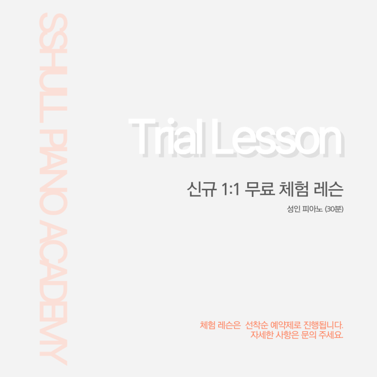 분당 성인 피아노 음악 학원 성인피아노 무료 체험 레슨! 선착순 이벤트! 성인 취미 생활 정자동 슐피아노아카데미 (클래식, 재즈, 반주법) 평소 고민만 하셨다면? 선착순 무료 체험 레슨받아보시고 결정하시면 됩니당!! 3월 31일까지 선착순 진행되고 있으니 서둘러 주세요!! 슐피 오픈 이래 처음 진행되는 무료 이벤트! 놓치면 후회하실걸요~? 주변에 악기 레슨 고민하고 계시다면 널리 널리 알려주세요~ 무료 체험 레슨 대상? 슐피아노에 처음! 신규 누구나 피아노를 배우고 싶은 성인이라면? 누구나 가능합니다! 평소 고민만 하고 실천하기 어려우셨던 분들! 피아노 처음인데 괜찮을까 망설이셨던 분들! 시니어, 직장인, 대학생, 주부 ☝....... <img src="https://blogthumb.pstatic.net/MjAyNjAzMTBfMTQy/MDAxNzczMTI4OTYzNDYw.s6lj-D1-JarOtnPqc7kd5joCNFet8izWQbLYaLsTH38g.MBp_7JdAjEYOggf6qCDYGkpydJfn6w2apxVSLaecdgog.PNG/%C1%A6%B8%F1%C0%BB_%C0%D4%B7%C2%C7%D8%C1%D6%BC%BC%BF%E4.-_%BA%B9%BB%E7%BA%BB.png?type=s3" />