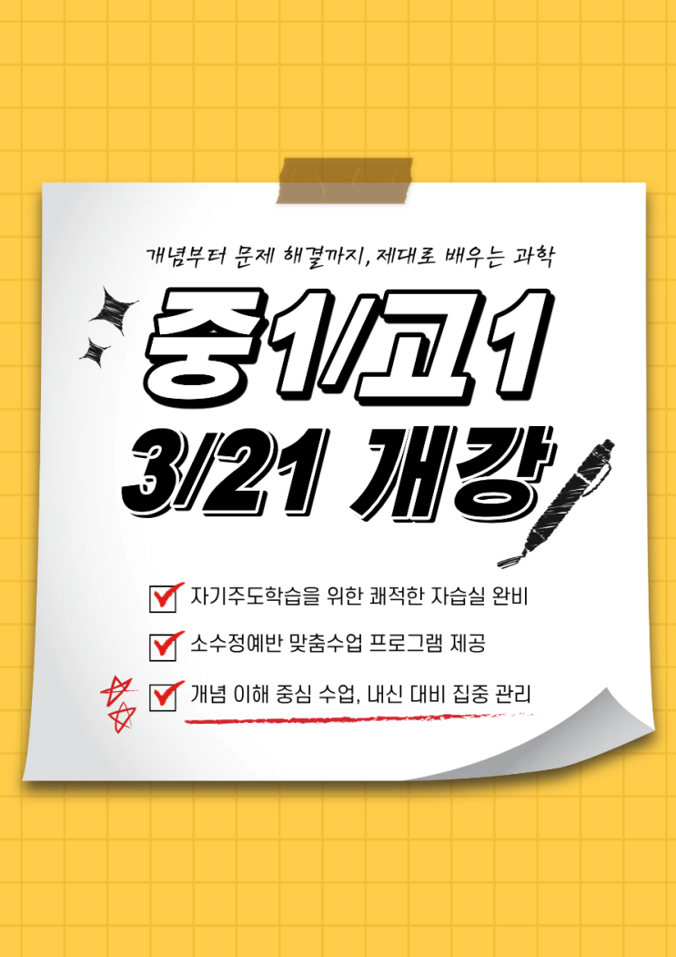 국제스카이학원 중1 과학 / 고1 과학 개강 안내