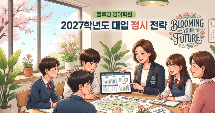 안녕하세요! 화정동 학생들의 든든한 영어 페이스메이커, 블루밍 영어학원입니다. 새 학기가 시작되고 어느덧 따뜻한 봄기운이 느껴지는 3월입니다. 새로운 학년을 맞이한 설렘도 잠시, 우리 고등부 학생들과 학부모님들은 하루하루 다가오는 대입 생각에 고민이 깊어지실 텐데요. 특히 매년 조금씩 달라지는 입시 트렌드 속에서 우리 아이에게 맞는 최적의 길을 찾는 것이 무엇보다 중요하죠! 그래서 오늘은 2027학년도 대입을 준비하는 수험생과 학부모님들을 위해, 서울교육청 교육연구정보원(서교연)에서 공개한 '2027 대입 정시모집 이해와 대비'의 핵심 내용을 알기 쉽게 정리해 보았습니다. (아래 기사를 정리하여 작성된 글입....... <img src="https://blogthumb.pstatic.net/MjAyNjAzMTZfMTg5/MDAxNzczNjQ2MTU5Mzk0.pQB0eje3TUWrDKLzCYsp19DeI-qZQROLkRz7PXg37Jog.ayNhrtrjIJ0sErsoA-CV2AcsYgrXzWK4L_cCwTU3sZwg.PNG/Gemini_Generated_Image_jz12gtjz12gtjz12.png?type=s3" />
