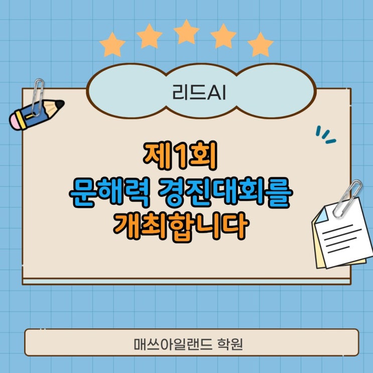 제1회 전국 문해력 경진대회를 개최합니다. "매쓰아일랜드학원 리드AI"