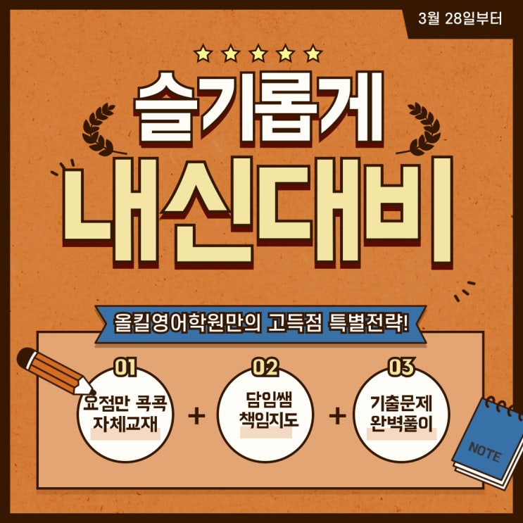 안녕하세요 불당동 내신/수능 영어전문 올킬영어학원 입니다 2026년 1학기 중간고사 내신대비는 고등학교- 3월 28일 토요일부터 시작 중학교- 3월 30일 월요일부터 시작 합니다 본격적인 내신대비는 상기된 날짜부터 이긴 하지만 고등학교 1,2학년 친구들의 경우에는 정규수업을 열심히 하고 있는 지금도 교과서 본문은 각 과당 2회독 이상씩 미리 학습을 시키는 중입니다 우리 친구들은 집에서도 이렇게 열심히 학습하면서 궁굼한 점은 언제든 질문하고 해결해 나가고 있습니다 올킬 영어학원에서 내신대비가 가능한 학교는 입니다 중학생은 우리 케일린선생님과 원장인 제가 고등학생은 전원 제가 모든 범위의 수업을 진행하고 조교 선생님과 함....... <img src="https://blogthumb.pstatic.net/MjAyNjAzMTZfMzkg/MDAxNzczNjQ2NTQxMTIz.XTWzrT6SJHUz_kgSnoOGz3jViXWDtWe1PYC08hbv5esg.UPL7aFwDkaFuT0gZ-rksvslADeSdxW9qnPyDLJquwgMg.JPEG/%C1%A6%B8%F1%C0%BB-%C0%D4%B7%C2%C7%D8%C1%D6%BC%BC%BF%E4_-001.jpg?type=s3" />