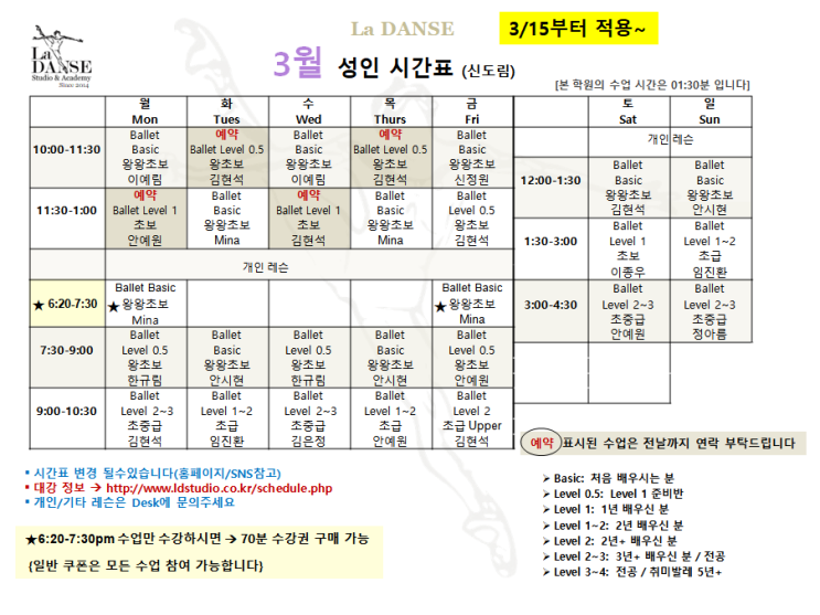 3월 정상 시간표로 돌아왔습니다^^