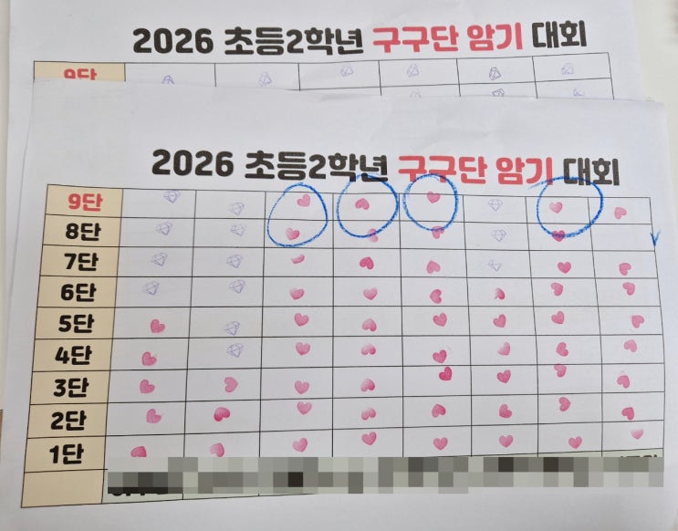 겨울방학 동안 아소비큐미르헬리오시티학원에서는 초등학교 2학년 친구들을 대상으로 구구단 대회를 진행했습니다. 1월부터 2월까지 두 달 동안 꾸준히 연습하며 구구단을 완벽하게 외우는 도전을 했는데요. 사실 초등학교 2학년에게 구구단은 쉽지 않은 과정입니다. 처음에는 “선생님… 7단이 너무 어려워요.” “8단에서 자꾸 헷갈려요.” 이런 말들이 교실에서 자주 들리기도 했습니다. 하지만 가락초 수학학원, 헬리오시티 초등수학학원인 우리 교실에서는 포기하지 않고 조금씩 반복 연습을 이어갔습니다. 겨울방학 동안 꾸준히 연습한 구구단 구구단은 초등 수학에서 정말 중요한 기초입니다. 곱셈은 물론이고 이후 배우게 되는 나눗셈, 분....... <img src="https://blogthumb.pstatic.net/MjAyNjAzMTJfMjY0/MDAxNzczMzA4OTQxNTgx.8SktiBd_ZRd4m-jJoD_c2waYKZVlD8Z6p307k1bww4gg.vS669wFXgEV2ju36F5BliSAjEhSpgL10kqYjrfscDqsg.JPEG/KakaoTalk_20260312_181931606.jpg?type=s3" />
