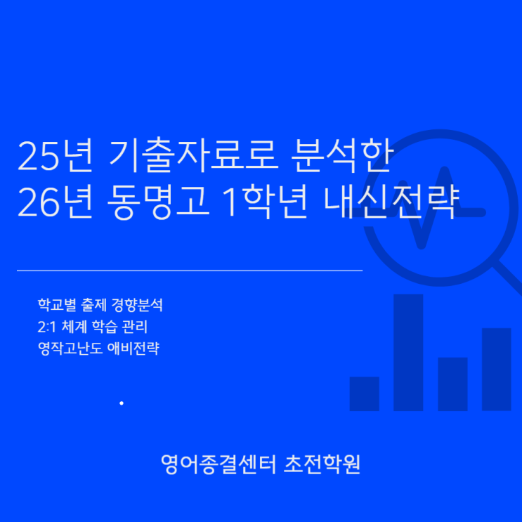 초전동영어학원, 학생 학부모님 안녕하세요. 영어종결센터 초전학원입니다. 오늘은 학교별 분석 동명고편 2번째 1학기 중간고사 학습전략에 대해 말씀드리겠습니다. 이제 1학기 중간고사 날짜가 정해졌네요. 앞으로 대략 40일 정도 남았네요. 25년 동명고 1학년 실제 기출 초전도영어학원, 영어종결센터 초전학원에서 실제로 분석한 동명고 기출시험입니다. 보시는 데로 요지와 같이 내용을 알면 그대로 해결되는 문제도 있지만, 어법, 주제, 제목 등 선택지 해석능력을 요구하기도 합니다. 또한, 어법, 요약, 영작으로 난이도가 갈리는것을 볼 수 있습니다. 26년 동명고 1학년 1학기 중간고사 대비 학습전략 따라서, 초전도영어학원, 영어종결센....... <img src="https://blogthumb.pstatic.net/MjAyNjAzMDlfMjQ2/MDAxNzczMDA5NDEzNzY0.f0wIqKR5zC_zIc8EUe_C_AWSjUs8QZ9-RrjnZWFxG_Ag.51UPAuEJbXTx3U2ZnOUcYTW9i0EFF16Zpo846memjbAg.PNG/%C1%A6%B8%F1%C0%BB_%C0%D4%B7%C2%C7%D8%C1%D6%BC%BC%BF%E4_-001_%286%29.png?type=s3" />