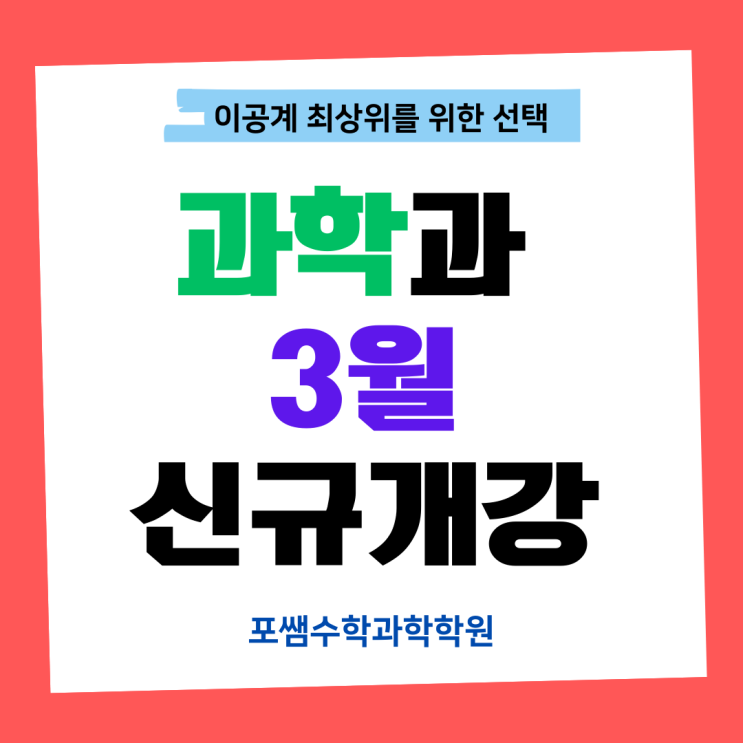 안녕하세요 이공계 최상위를 위한 선택 포쌤수학과학학원입니다 과학과 3월 개강 안내입니다. 최고의 강사진이 지도하고 있습니다. 포쌤수학과학학원 055)321-0245 010-5750-0245 상담시간안내 평일 14:30~21:30 토요일 11:00~16:00 일요일, 공휴일 휴무 #김해수학학원#김해과학학원#율하수학학원#율하과학학원#포쌤수학과학학원#김해율하수학과학학원 #김해율하과학고대비#김해율하자사고대비#김해율하의치한약수#김해율하일반고최상위#김해율하초등수학과학학원 #김해율하모의고사대비#김해율하고등수학내신#김해율하중등수학내신 #김해율하물리대회준비#김해율하화학올림피아드준비#경남과학고내신대비#창원과학고내신대비 #고등통합과학#고등....... <img src="https://blogthumb.pstatic.net/MjAyNjAzMDdfMTU2/MDAxNzcyODY2NjcxMjE4.BFscgr5Csh44oXZ_59VGJtsgxQ26M3BLscH2kqixdq0g.9yNWHbGEXARWoMOecpwGPrrOG12X3N_-2yax_jSwkIQg.PNG/1.png?type=s3" />