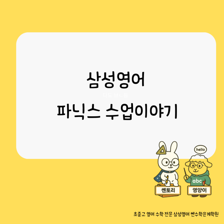 오늘도 우리 아이들은 소리를 하나씩 정확하게 쌓아가고 있습니다. 안녕하세요. 삼성영어 쎈수학 은계학원의 달님쌤입니다. 오늘은 파닉스 수업 이야기를 해볼까 합니다. 1. 소리부터 정확하게 배우는 파닉스 파닉스는 알파벳 이름이 아니라 "소리(Phonics Sound)"가 가장 중요합니다. 이번 시간에는 A : /æ/ I : /ɪ/ 입모양을 보고 따라 하며 듣고 → 말하고 → 구분하는 활동을 진행했습니다. 아이들은 오늘 배운 음가를 바탕으로 해당 소리가 들어간 단어까지 함께 학습합니다. 삼성영어 파닉스에서는 친한 친구 모음(Vowel)을 먼저 익히고, 이 모음이 단자음과 만나면서 자연스럽게 단어를 읽을 수 있도록 지도합니다. 모음을 정....... <img src="https://blogthumb.pstatic.net/MjAyNjAzMDFfMjM2/MDAxNzcyMzcyODk4ODAw.HqqMr8ObY8l0fkdgw8VW7WgQZ7E6UJnq94737ihaGZIg.gWjrENgys4-J53lRWaPGlQChaYEM8J4LeWv-ScY_OtQg.PNG/Yellow_coming_soon_Instagram_post_%285%29.png?type=s3" />