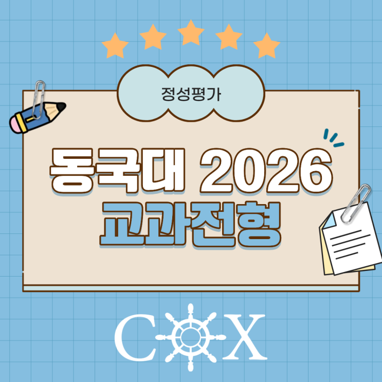 안녕하세요, COX 수학학원입니다. 2026학년도 대입 결과가 공개되면서 학부모님들의 관심이 높아지고 있습니다. 특히 동국대학교는 상위권 대학 중 비교적 빠르게 전형 결과를 공개하며 교과전형의 실질 평가 구조를 구체적으로 설명했습니다. 겉으로 보이는 평균 등급보다 더 중요한 것은 ‘무엇이 당락을 가르는가’입니다. 이번 결과에서는 교과 성적보다 서류종합평가의 영향력이 절대적이었다는 점이 핵심입니다. 정성평가 확대 흐름까지 함께 정리해 드리겠습니다. 2026 동국대 교과전형 결과 2026학년도 교과전형 학교장추천인재 기준 최종 합격자 평균 등급은 인문 2.23등급, 자연 2.11등급입니다. 대표 학종 전형인 DoDream은 인문 2.67....... <img src="https://blogthumb.pstatic.net/MjAyNjAyMjNfMjAy/MDAxNzcxODUxNDY3MjQ2.6fuzKoIyZJU4ulC1ApqfsyigZkeEf0On7JR8KdkNDlsg.mtHswlbgEGVOmJA2ArUcffTUy4zalfO48AtCIAJF7uIg.PNG/1.png?type=s3" />