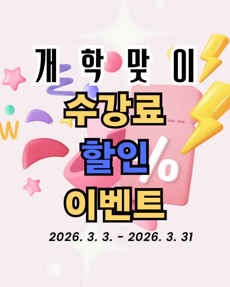 안녕하세요 바이원실용음악학원입니다 오늘은 설레던 개학날이네요 !! 바이원실용음악학원은 개학을 맞이하여 파격적인 수강료 할인이벤트를 진행합니다 ! 보컬 취미반 / 피아노 취미반 / 기타 취미반 레슨 등록 시 3개월 등록 시에 정상 금액 대비 무려 27만원 할인 된 금액 으로 레슨을 받아보실 수 있는 큰 할인 이벤트 입니다 ‼ 주 1회 기준으로 총 12회의 수업 과정이며 수업은 한 타임당 50분 동안 이루어집니다 또한, 모든 수업은 1대1 개인 레슨으로 진행되어 한 타임 동안 온전히 1분의 수강생만 케어합니다 보컬취미반 피아노취미반 기타취미반 레슨에서는 모든 장르의 레슨을 배우실 수 있으며 현재 나의 기본기에 맞추어....... <img src="https://blogthumb.pstatic.net/MjAyNjAzMDNfMTMw/MDAxNzcyNTE0NzgxMzk0.hW5SD7ZuizmKAWKZ6z7dzvh_vS6_ZIqD_1rud0JaCOcg.v69ZToiiK1tPDyuMA7qnVssPd9pHtc4YT8s9ToSWmNsg.PNG/KakaoTalk_20260303_140732004.png?type=s3" />