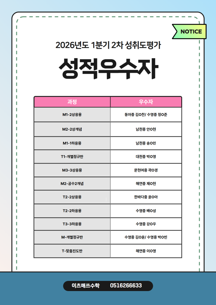 [2026년도 1분기 2차 성취도평가 성적우수자]