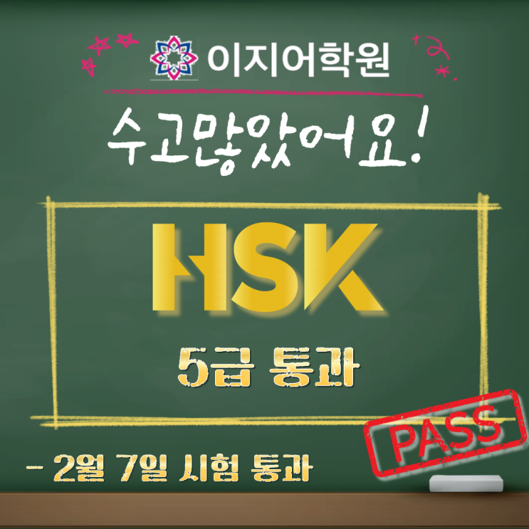 안녕하세요 인천이지어학원[HSK전문학원] 입니다. HSK 5급 합격! 수강생 2명 246점 2026년 2월 7일 실시된 HSK 5급 시험에서 246점 — 두 분 모두 합격이라는 우수한 성과를 달성했습니다. 이번 결과는 단순한 시험 합격을 넘어, 체계적인 커리큘럼과 꼼꼼한 학습 관리가 만들어낸 결실입니다. 이지어학원에서는 개인별 수준을 정확히 분석해 어휘·문법·독해·듣기까지 HSK 5급에 꼭 필요한 핵심만을 집중적으로 지도합니다. 기초부터 실전까지 단계별로 쌓아 올린 학습과 반복 훈련을 통한 실전 감각 향상이 이번 두 분 모두 합격이라는 결과로 이어졌습니다. HSK 을 준비하며 방향이 고민되신다면, 결과로 증명하는 이지어학원에서 시작해....... <img src="https://blogthumb.pstatic.net/MjAyNjAzMDVfMTE2/MDAxNzcyNjk1NTY2NjI4.kPy6OQNliNm_pmuoumVfI4xmvrU-AI2cqiYgFa_BKn0g.EOJJ-wQl2JgiDE7fCsZMx1JjD5bagWUvzHzCRWH9ECYg.PNG/%C1%A6%B8%F1%C0%BB_%C0%D4%B7%C2%C7%D8%C1%D6%BC%BC%BF%E4._-_2026-03-05T162427.600.png?type=s3" />