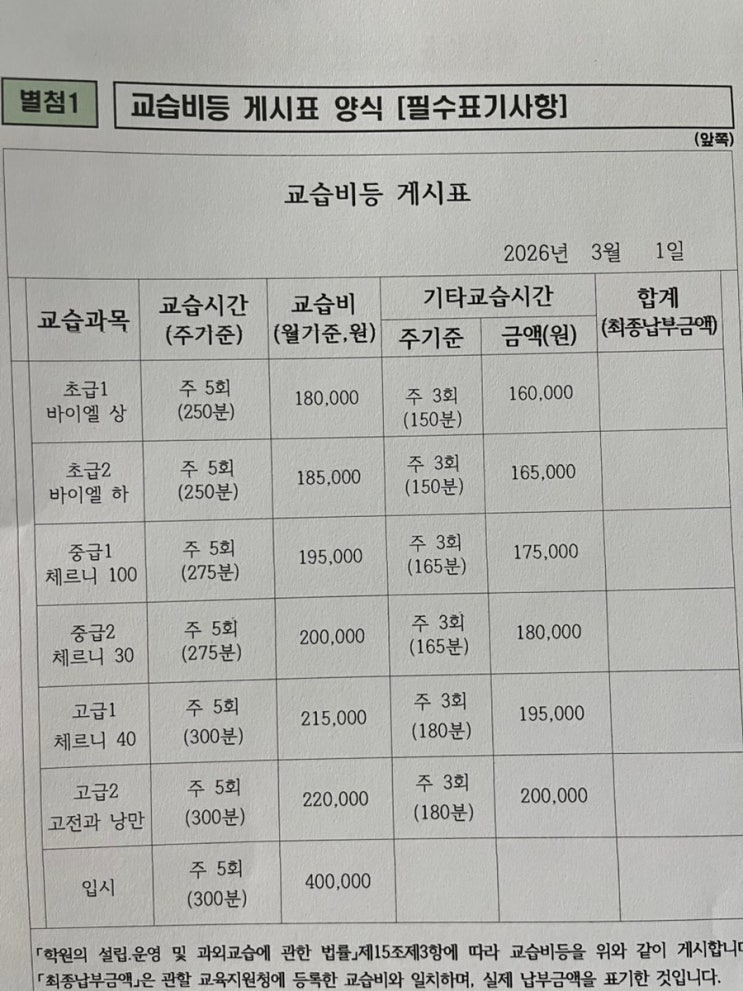 교습비 안내